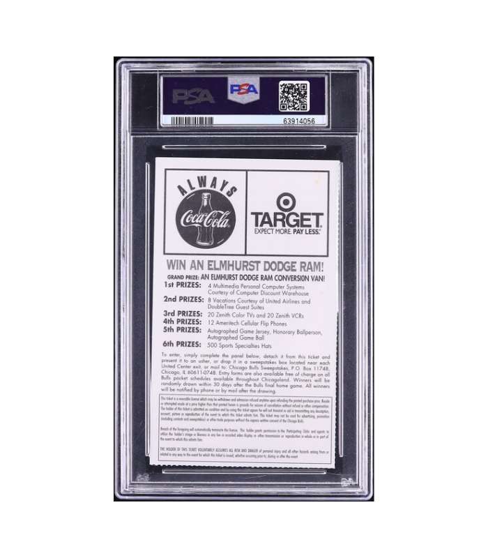 1998 Chicago Bulls Ticket Stub Michael Jordan PSA 4 VGEX