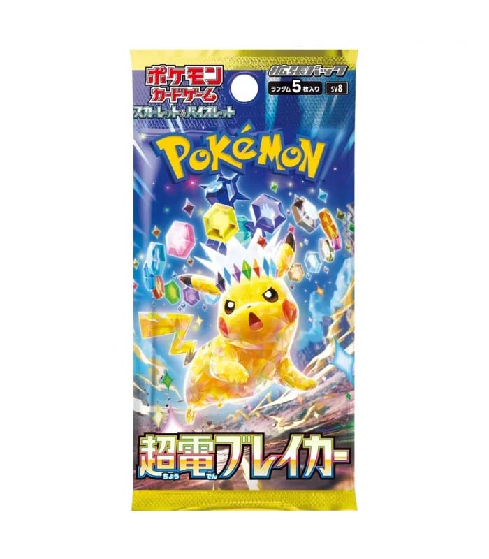 ¡La caja japonesa que revolucionó el meta eléctrico! Pokémon TCG: Super Electric Breaker (SV8a / 超電ブレイカー), lanzada el 18 de octubre de 2024 en Japón por The Pokémon Company, es la versión original del núcleo de Surging Sparks (inglés). Esta Booster Box sellada incluye 30 sobres booster con 5 cartas cada uno (total ~150 cartas), perfecta para openings intensos y cazar las secret rares más codiciadas del año.